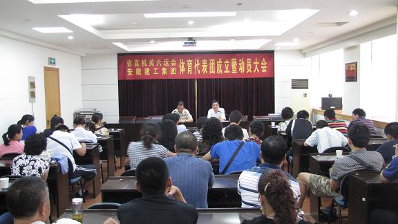 8月16日,安徽建工集團(tuán)召開(kāi)省直機(jī)關(guān)六運(yùn)會(huì)建工體育代表團(tuán)成立暨動(dòng)員大會(huì)。集團(tuán)公司參賽隊(duì)員共計(jì)80多人參加了動(dòng)員大會(huì),安徽建工集團(tuán)體育代表團(tuán)副團(tuán)長(zhǎng)、集團(tuán)公司紀(jì)委書(shū)記、工會(huì)主席劉振武出席會(huì)議并作動(dòng)員講話,運(yùn)動(dòng)員代表、項(xiàng)目責(zé)任單位代表分別宣誓。大會(huì)由代表團(tuán)總領(lǐng)隊(duì)、集團(tuán)公司工會(huì)副主席李鵬飛主持。