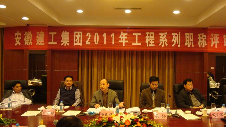 11月24日至26日,安徽建工集團(tuán)2011年度工程系列職稱評(píng)審會(huì)在安徽水利·六安沃爾特大酒店召開,集團(tuán)所屬各單位的包括建筑、路橋、水利等專業(yè)共413名專業(yè)技術(shù)人員申報(bào)了職稱評(píng)審。省人社廳專業(yè)技術(shù)人員管理處調(diào)研員吳偉、副處長胡建華、省國資委人事教育處副處長鄭洪國蒞臨會(huì)議指導(dǎo),集團(tuán)總經(jīng)理、集團(tuán)高評(píng)委主任趙時(shí)運(yùn)主持會(huì)議。