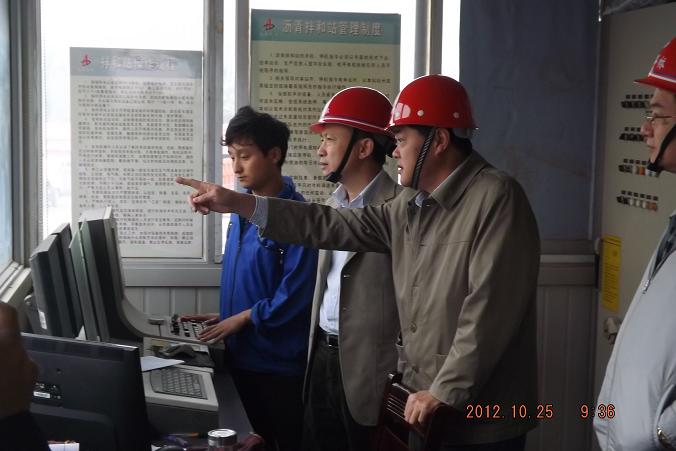 趙總一行還來到該部瀝青拌合站后場,對該部瀝青場站的標準化建設(shè)給予了高度評價。趙總一行還來到瀝青拌合站操作室,饒有興趣的觀看了拌和站整個操作流程的視頻監(jiān)控畫面,詳細了解了瀝青拌合站拌合的各個環(huán)節(jié)。