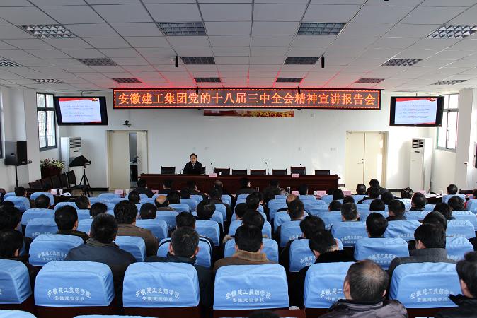 2月21日上午,省國資委黨的十八屆三中全會(huì)精神宣講團(tuán)來到安徽建工集團(tuán)作專場(chǎng)宣講。宣講團(tuán)成員、省國資委綜合法規(guī)處處長王思軍同志作專題報(bào)告,省國資委組宣處副處長秦正敏出席報(bào)告會(huì)。集團(tuán)公司領(lǐng)導(dǎo)全體成員、集團(tuán)機(jī)關(guān)部門負(fù)責(zé)人,所屬各單位、直屬經(jīng)濟(jì)實(shí)體領(lǐng)導(dǎo)班子成員,共 140余人聆聽了報(bào)告。
