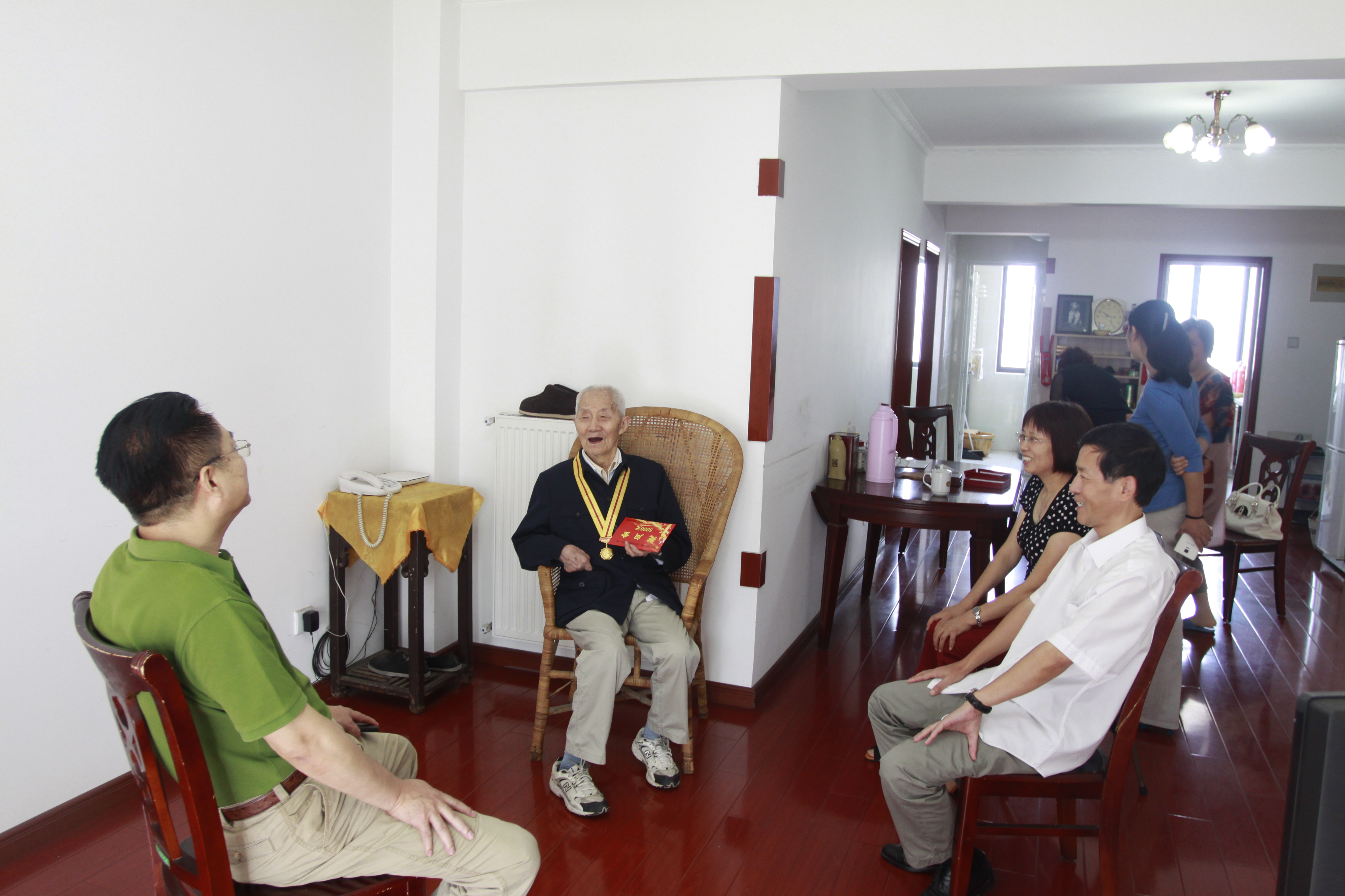 趙時(shí)運(yùn)董事長(zhǎng)和劉家靜總經(jīng)理仔細(xì)詢問(wèn)了解老同志身體和生活方面情況并祝愿他們身體健康,對(duì)抗戰(zhàn)老戰(zhàn)士、老同志在新中國(guó)建立及安徽建工發(fā)展歷程中所做的重要貢獻(xiàn)表示由衷的敬意。兩位老同志對(duì)集團(tuán)公司領(lǐng)導(dǎo)的到來(lái)表示感謝,高興地帶上紀(jì)念章與領(lǐng)導(dǎo)合影留念,并祝愿集團(tuán)公司的發(fā)展越來(lái)越好。