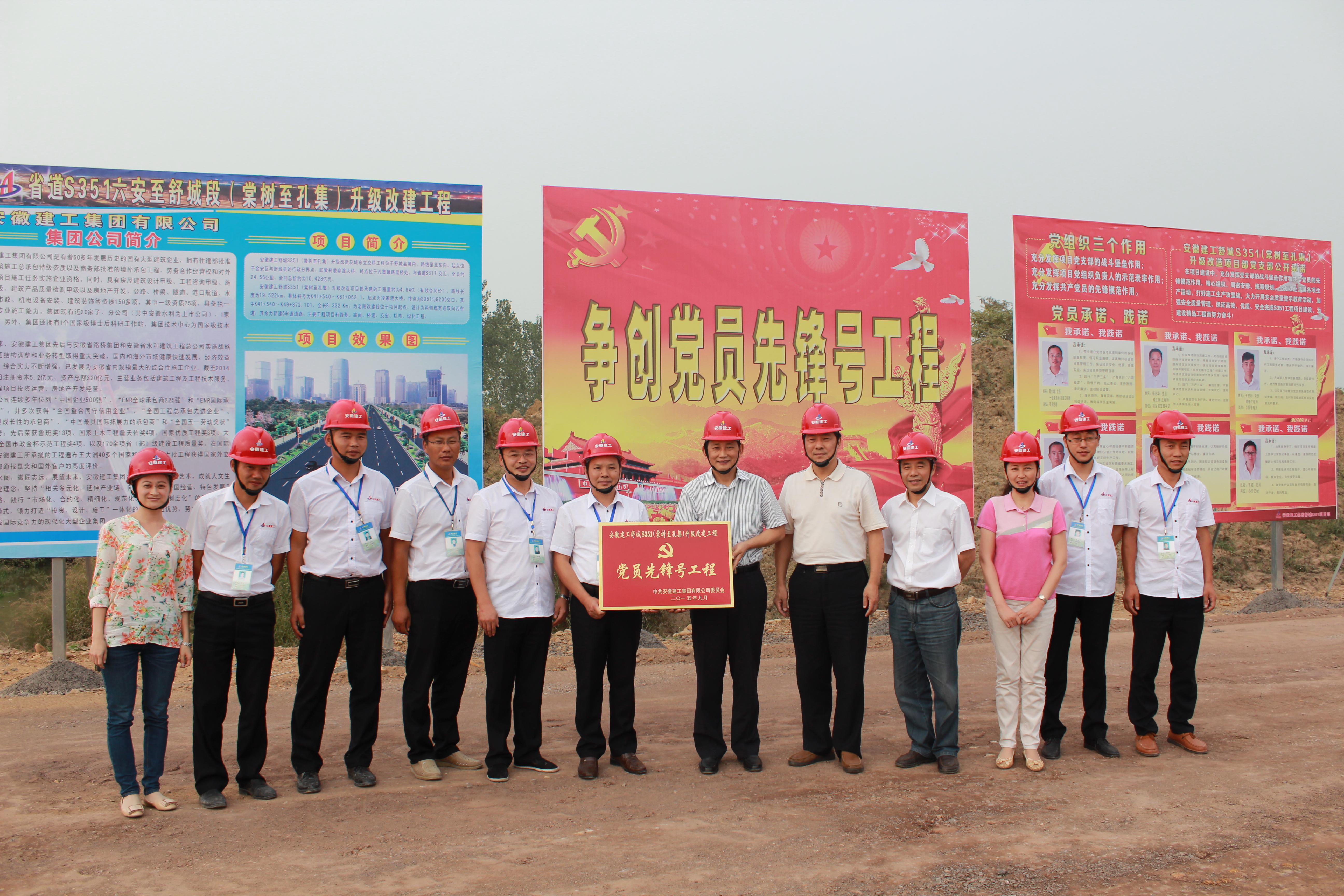 9月18日上午,安徽建工集團在安徽路橋S351項目召開項目黨建工作現(xiàn)場觀摩交流會。集團公司黨委副書記牛曙東、工會主席徐曉光出席會議并為該項目“黨員先鋒號工程”授牌。集團公司所屬17個單位黨委(總支)書記、黨委工作部負責人及集團公司機關(guān)黨群部門負責人等70余人參加交流會。集團公司黨委工作部主任徐文聯(lián)主持會議。