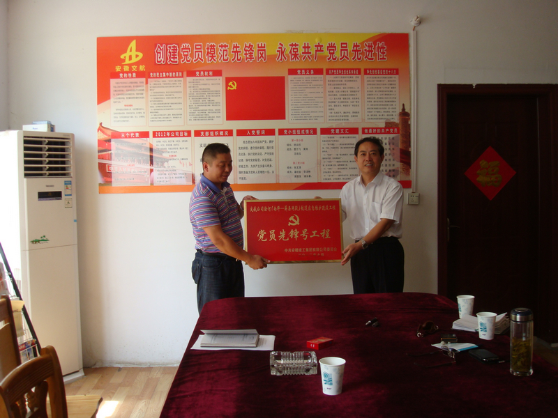 7月31日-8月1日,集團(tuán)公司黨委副書(shū)記、副董事長(zhǎng)李長(zhǎng)斌在黨委工作部同志陪同下趕赴蚌埠和宿州,深入安徽水利和交航公司申報(bào)黨員先鋒號(hào)工程的三個(gè)項(xiàng)目部進(jìn)行調(diào)研慰問(wèn)和授牌。集團(tuán)公司黨委委員、董事、安徽水利總經(jīng)理?xiàng)顝V亮,集團(tuán)公司黨委委員、副總經(jīng)理霍向東,集團(tuán)公司紀(jì)委書(shū)記、工會(huì)主席牛曙東出席了水利公司兩個(gè)黨員先鋒號(hào)工程授牌儀式。交航公司黨委副書(shū)記曹興堂,紀(jì)委書(shū)記、工會(huì)主席王永來(lái)陪同參加澮河航道疏浚工程授牌儀式。