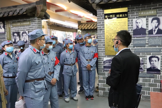 在統(tǒng)一換上紅軍服裝后,青年團員們首先來到金寨紅軍文化廣場。在革命烈士紀念塔下,面對鮮艷的中國共產主義青年團團旗,公司團委書記帶領到場青年團員重溫入團誓詞,牢記初心使命,緬懷革命先烈,傳承五四精神,并對榮獲公司2020年度“五四紅旗團支部”與“優(yōu)秀團員”的集體與個人進行了表彰。