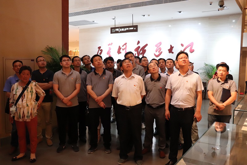 宣誓結(jié)束后,全體黨員先后參觀了渡江戰(zhàn)役總前委群雕,七大展廳、功勛長廊及千余件珍貴的革命文物。在一件件珍貴的革命文物前,在一個(gè)個(gè)犧牲英烈的姓名前,同志們不時(shí)駐足凝望;在巨幅“勝利之師”浮雕前,同志們用注目禮深切向革命先烈們致以最崇高的敬意。