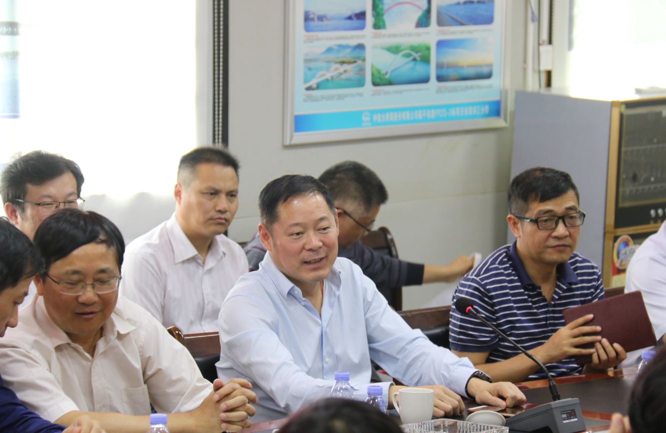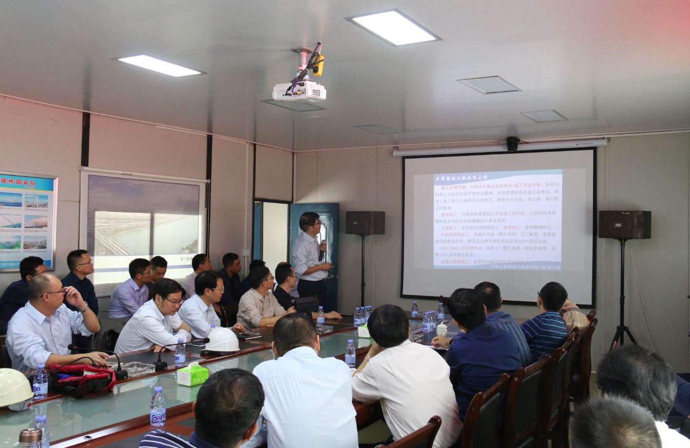 隨后,觀摩團(tuán)乘船來到大橋局福平鐵路FPZQ-3標(biāo)項(xiàng)目部,在項(xiàng)目會(huì)議室,雙方舉行了觀摩交流會(huì)議。中鐵大橋局副總工程師兼項(xiàng)目總工程師王東輝用視頻、PPT形式向觀摩團(tuán)一行講解了平潭海峽公鐵兩用大橋項(xiàng)目的工程概況及特點(diǎn)和難點(diǎn)、項(xiàng)目主要?jiǎng)?chuàng)新點(diǎn)、項(xiàng)目施工組織管理、主要施工方案、項(xiàng)目質(zhì)量安全管理、四新技術(shù)、科研情況及項(xiàng)目最新進(jìn)展。項(xiàng)目經(jīng)理姚華等就觀摩人員提出的問題一一做了解答,并交流了個(gè)人體會(huì)。