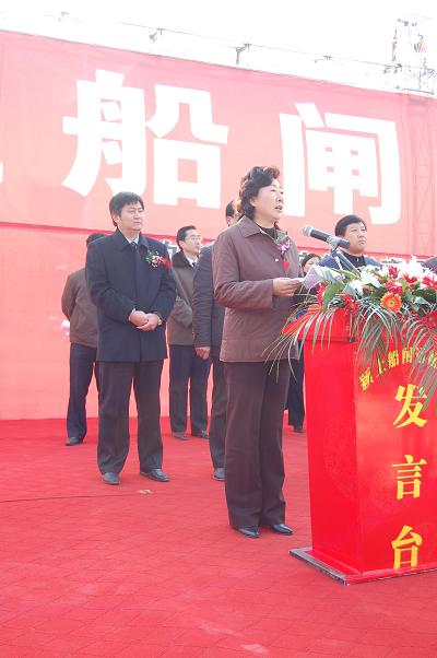 潁上船閘通航典禮由省交通廳副廳長羅寧主持。省長助理花建慧代表省政府向潁上船閘建成通航表示祝賀,她指出:潁上船閘建設是我省沙潁河復航的第一個工程,是全省“861計劃”重要項目,建設潁上船閘,開辟阜陽航運的第二條入淮通道,是沙潁河航運全線復航的迫切需要,對加快淮河航道網(wǎng)建設、完善區(qū)域綜合運輸體系、改善流域水環(huán)境、推進國家高等級航道網(wǎng)建設、促進豫皖合作,特別是皖北地區(qū)發(fā)展都是具有十分重要意義。省港航建設投資集團公司總經(jīng)理李家俊隨后詳細介紹了潁上船閘建設情況,他說:潁上船閘的勝利通航是在省委省政府的悉心關懷下、阜陽市委市政府和阜陽人民的大力支持下,經(jīng)過所有參建單位的近三年辛勤工作,今日終于勝利通航。潁上船閘建成通航既實現(xiàn)了沿淮群眾多年的夙愿,也為全面回復沙潁河航運開了一個好頭,作為安徽省“兩干三支”水運主航道之一的沙潁河全線復航已是指日可待,將對地方經(jīng)濟的發(fā)展起到有力的促進作用。最后,副省長黃海嵩為穎上船閘通航啟動通航按鈕!