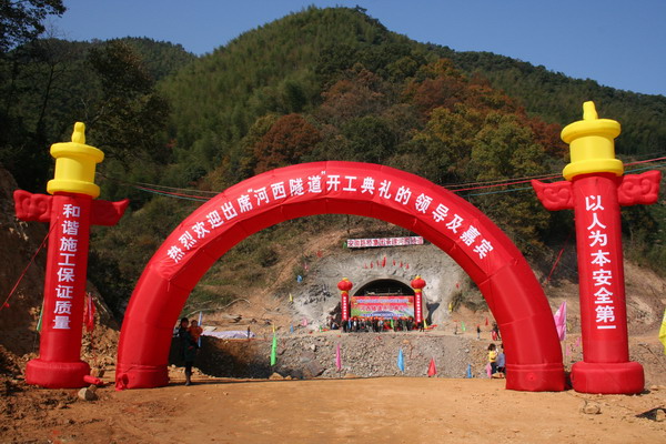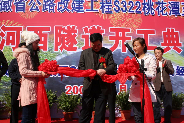 童宗勝董事長宣布隧道開工。吳銳智書記為隧道開工剪彩。