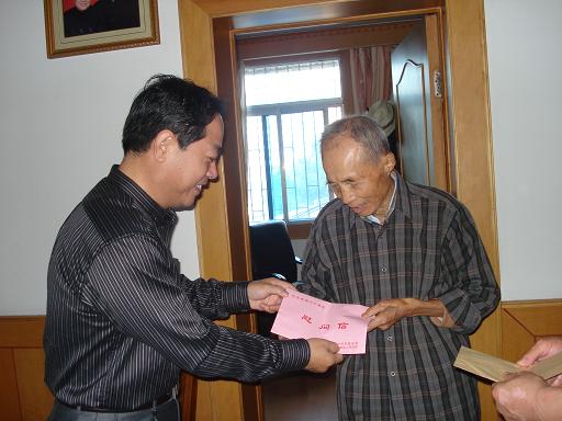 在中華人民共和國(guó)成立60周年到來(lái)之際,集團(tuán)公司副董事長(zhǎng)李長(zhǎng)斌率領(lǐng)集團(tuán)辦公室主任陳萍、安徽建機(jī)公司黨委書(shū)記王愛(ài)國(guó)等一行6人,于9月23日上午驅(qū)車(chē)前往安徽建機(jī)公司離休老干部——新四軍老戰(zhàn)士稽友三同志家中看望和慰問(wèn)。李長(zhǎng)斌副董事長(zhǎng)非常關(guān)心稽老的身體健康和生活情況,和老人親切交流,噓寒問(wèn)暖,代表集團(tuán)公司和集團(tuán)黨委向稽老送去慰問(wèn)信、慰問(wèn)金,并送上節(jié)日的關(guān)懷和祝福。