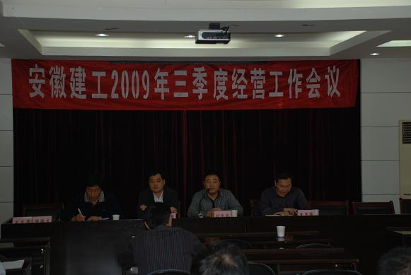 10月20日下午,安徽建工集團(tuán)召開(kāi)2009年三季度經(jīng)營(yíng)工作會(huì)議。集團(tuán)公司董事長(zhǎng)、總經(jīng)理胡運(yùn)成,副總經(jīng)理戴良軍,所屬各單位、直屬經(jīng)濟(jì)實(shí)體主要領(lǐng)導(dǎo)或分管領(lǐng)導(dǎo)、經(jīng)營(yíng)部門負(fù)責(zé)人等出席了會(huì)議,集團(tuán)公司經(jīng)營(yíng)部、財(cái)務(wù)資產(chǎn)部、人力資源部負(fù)責(zé)人參加了會(huì)議。會(huì)議由集團(tuán)經(jīng)營(yíng)部副主任陳傳文主持。