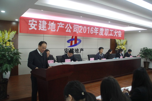 會(huì)上,安建地產(chǎn)總經(jīng)理、黨支書(shū)記楊斌作題為《優(yōu)化資源整合、夯實(shí)管理基礎(chǔ)、轉(zhuǎn)變工作思路、實(shí)現(xiàn)快速發(fā)展》的工作報(bào)告。報(bào)告對(duì)2015年工作進(jìn)行了客觀詳實(shí)的回顧,明確了2016年安建地產(chǎn)全年工作目標(biāo),重點(diǎn)部署了十二個(gè)方面工作:一是找準(zhǔn)規(guī)劃定位,提前做好謀劃;二是健全營(yíng)銷(xiāo)體系,加快項(xiàng)目去化;三是做好市場(chǎng)調(diào)研,加大開(kāi)發(fā)力度;四是夯實(shí)基礎(chǔ)建設(shè),實(shí)現(xiàn)信息化管理;五是加快建設(shè)創(chuàng)新,推行標(biāo)準(zhǔn)化管理;六是突破融資瓶頸,建立融資平臺(tái);七是發(fā)揮運(yùn)營(yíng)能力,盤(pán)活存量資產(chǎn);八是細(xì)化項(xiàng)目工作,強(qiáng)抓重點(diǎn)落實(shí);九是推進(jìn)文化建設(shè),樹(shù)立品牌形象;十是強(qiáng)化隊(duì)伍建設(shè),重視人才培養(yǎng);十一是加強(qiáng)廉政建設(shè),增強(qiáng)“兩個(gè)責(zé)任”;十二是加強(qiáng)黨建工作,推進(jìn)文化建設(shè)。會(huì)上,通過(guò)舉手表決的方式審議并通過(guò)了《總經(jīng)理工作報(bào)告》、《財(cái)務(wù)工作報(bào)告》及《安建地產(chǎn)薪資辦法》,表彰了2015年度公司先進(jìn)集體、先進(jìn)個(gè)人。